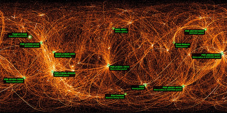 Кроме того, пульсары (быстро вращающиеся нейтронные звезды) интересны с точки зрения перспективной технологии навигации, отслеживающей положение и скорость космического аппарата по излучениям пульсара. Потенциально такая "галактическая система GPS" должна позволить кораблям быстро перемещаться по всей Солнечной системе и за ее пределами.