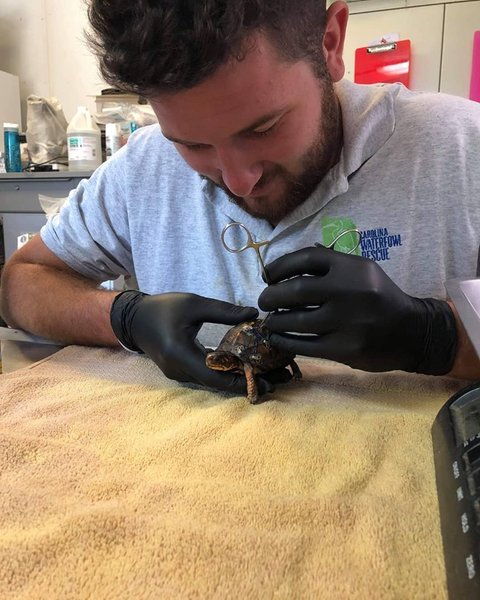 Сезон кладки яиц - самый опасный для черепах. Выходя на берег, они подвергаются множеству опасностей. Каждую неделю Carolina Waterfowl Rescue принимает до 40 раненых черепах с треснувшим панцирем.