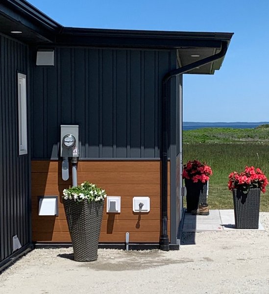 Здание под названием Beach House расположено в Новой Шотландии, Канада. Оно построено из панелей, изготовленных из переработанного пластика. Они обеспечивают отличную теплоизоляцию, долговечность, защиту от влаги и плесени. Кроме того, они достаточно прочные, чтобы выдерживать экстремальную силу ветра, аналогичную урагану категории 5.