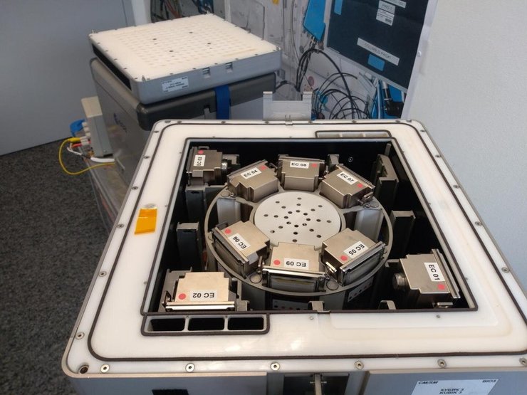 На борту МКС находятся 18 биореакторов размером со спичечный коробок, наполненные раствором бактерий и питательных веществ. В них поместят кусочки базальта, похожие на лунную и марсианскую породу. Ученые хотят проверить, насколько хорошо бактерии смогут извлечь из камней минералы в условиях невесомости.