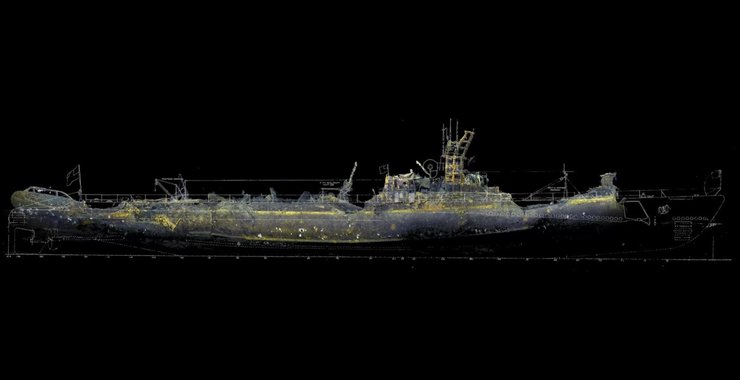 Нос подводной лодки был найден на глубине 820 метров у побережья Алеутских островов на Аляске. Для того, чтобы найти части подлодки команда, занимающаяся поиском затопленных суден времен Второй мировой войны, использовала автономные подводные аппараты и передовые фотограмметрические методы съемки, чтобы в дальнейшем создать 3D-изображение подводного судна.