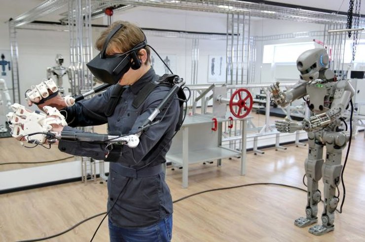 Искусственный интеллект позволяет Skybot двигаться и действовать автономно, а также работать в режиме "аватар", когда робота контролирует оператор в специальном костюме.