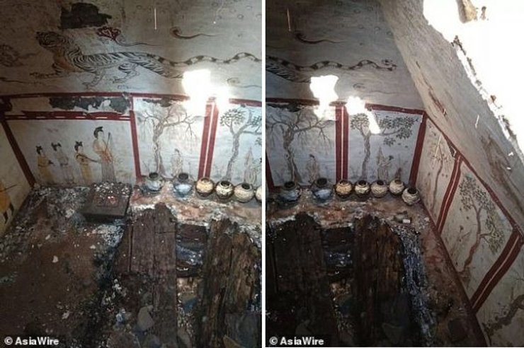 В китайском городе Тайюань, при постройке детской площадки возле начальной школы, строители случайно нашли древнюю гробницу династии Тан. Об этом пишет Daily Mail.