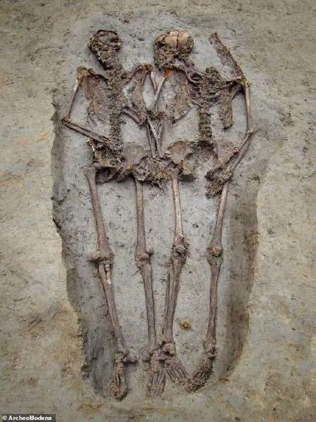 Захоронение времен Римской империи было обнаружено в итальянской Модене в 2009 году. В неглубокой могиле покоились два скелета, их руки соприкасались, к находке быстро пристало название "Влюбленные из Модены". Однако выяснилось, что оба скелета принадлежат мужчинам. Об этом пишет Daily Mail.