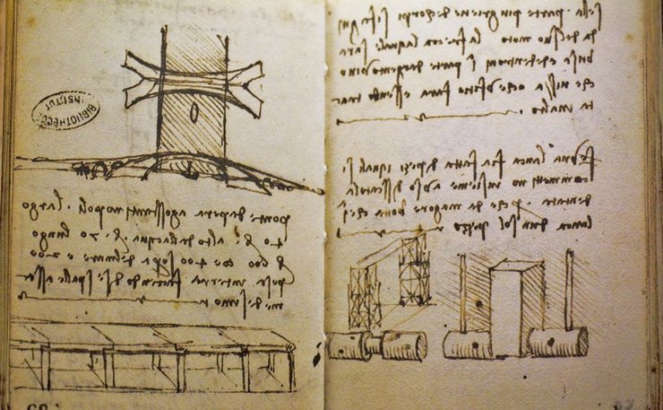 Чертеж моста обнаружили в одной из тетрадей да Винчи. Он разработал его для султана Баязида II, которому нужен был мост, чтобы соединить Стамбул и Галату. Но заказчику идея не понравилась и проект остался на бумаге.