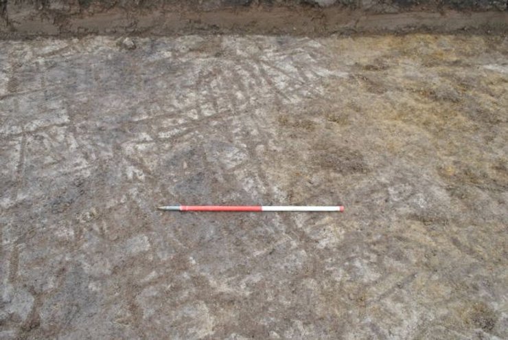 Команда археологов также обнаружила в соседнем каменном желобе длинные перекрещивающиеся следы, вероятно, сделанные доисторическими плугами.