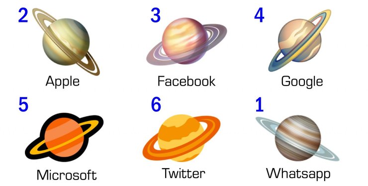 Неформальный конкурс от ученого выиграл WhatsApp, который точно отобразил наклон планеты в своих эмодзи и подробно воспроизвел кольца Сатурна.