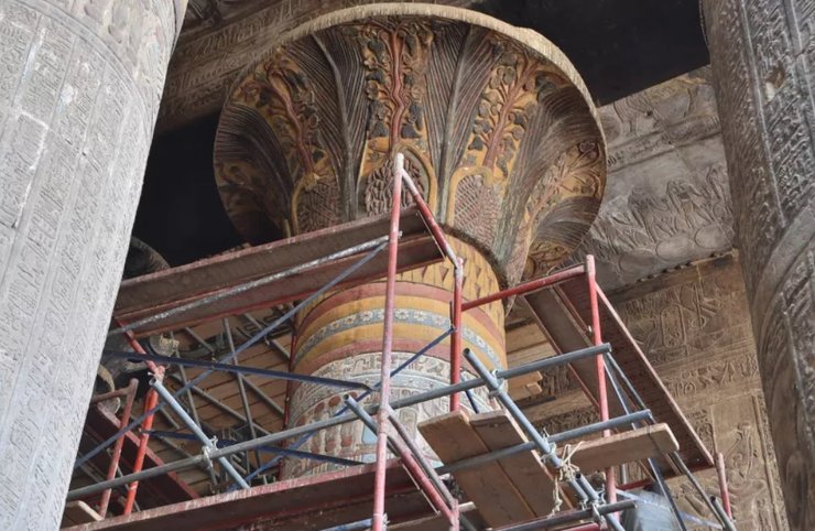 Реставрационные работы ведутся в 2-тысячелетнем храме экспертами из Германии и Египта. Во время удаления сажи и пыли со стен начали проступать рисунки, которыми древние египтяне украсили храм.