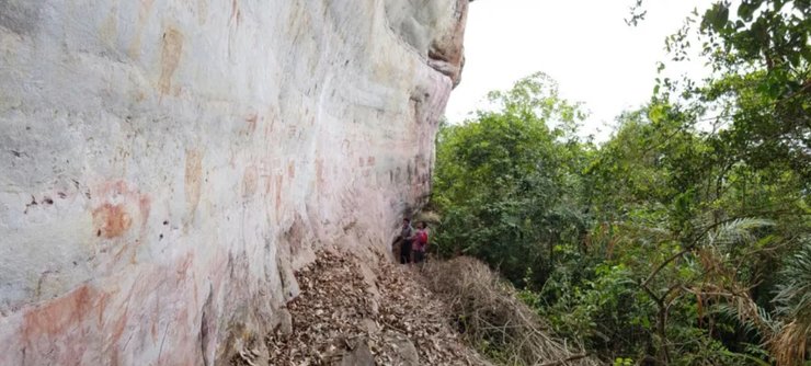Картина была нарисована охрой, которую в древности часто использовали в качестве краски. Череда различных рисунков раскинулась на скалах над тремя пещерами в колумбийской Амазонии.