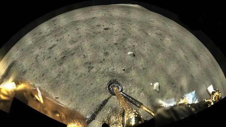 Посадочный аппарат уже приступил к сбору образов лунных камней и пыли.