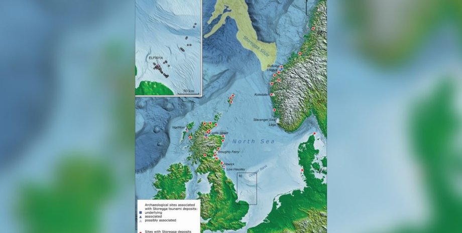 Исследователи предполагают, что некоторые части массива суши, известного как Доггерленд, которые соединяли Великобританию с Нидерландами, выдержали цунами Стурегга. Оно затопило большую часть региона в 6200 году до н.э. Некоторые ученые предполагают, что высота волны составляла до 25 метров, а ее скорость – 35 м/с.