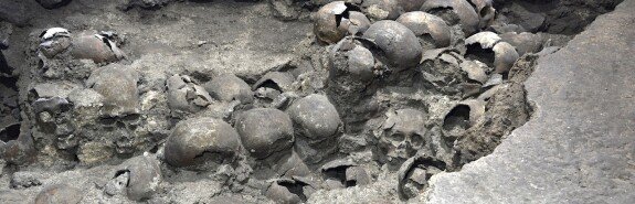 В Мехико были обнаружены новые секции знаменитой ацтекской башни из черепов. Вероятней всего, башня была частью сооружения, возведенного в честь ацтекского бога Солнца, войны и человеческих жертвоприношений.