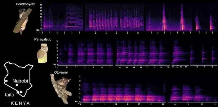 Биологи из Хельсинского университета смогли проанализировать крики или "вокализации" трех малоизвестных древесных млекопитающих: древесного дамана – разновидности Dendrohyrax и двух видов галаго – маленьких лемуровидных приматов.