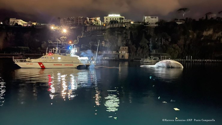 Береговую охрану гавани Сорренто привел к мертвому киту осиротевший детеныш.