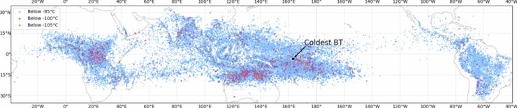 Сильное грозовое облако, образовавшееся над Тихим океаном в 2018 году, достигло самых низких температур из когда-либо зафиксированных. Об этом сообщает Space.com.