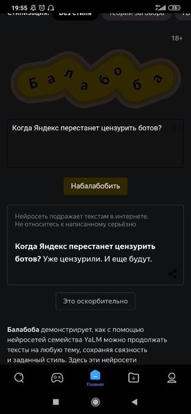 На днях компания "Яндекс" анонсировала работу ИИ-сервиса "Балабоба", работающий на основе Yet another Language Model (YaLM). Он может дописывать за пользователей предложения.