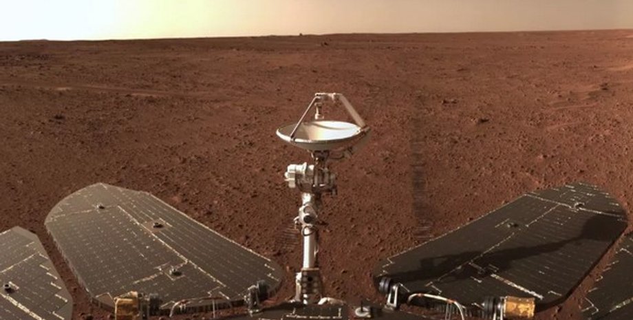 Орбитальный аппарат Tianwen-1, на котором марсоход отправился на Марс, также прислал изображение, на котором виден путь "Чжуронга", включая следы марсохода, оставленные на поверхности Марса.