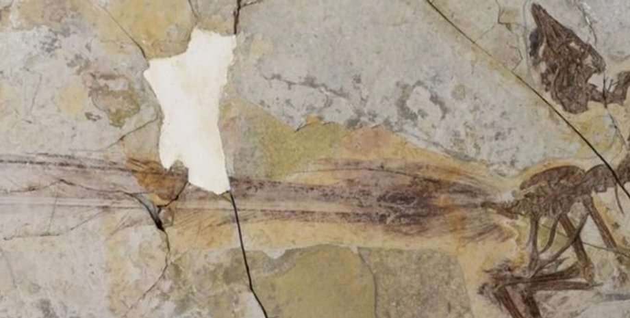 Исследователи впервые нашли окаменелые останки похожего на птицу динозавра с таким сложным набором перьев на хвосте.