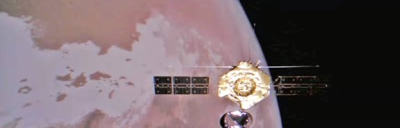 На двух фотографиях полностью или частично запечатлен орбитальный аппарат миссии, который помогает поддерживать связь между Землей и зондом, расположенным на поверхности Марса. Первая в своем роде фотография, на которой орбитальный аппарат полностью изображен, была сделана с помощью камеры. Ее зонд сам выпустил в космос.