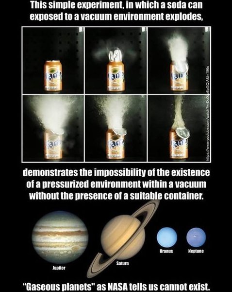 Сторонники "теории плоской Земли" сравнивают газовые гиганты Солнечной системы с банкой газировки.