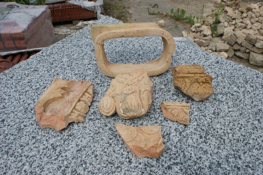 - набор стеклянных изделий. Археологи предполагают, что их использовали в фармацевтике, в частности флаконы, пластину для растирания порошков, вспомогательный инструмент. Их нашли в нише сооружения конца 19 — нач. 20 вв.