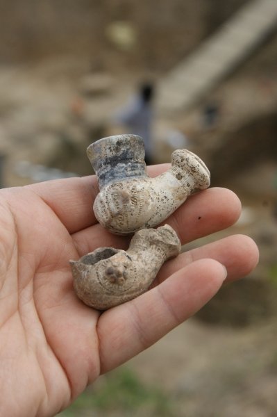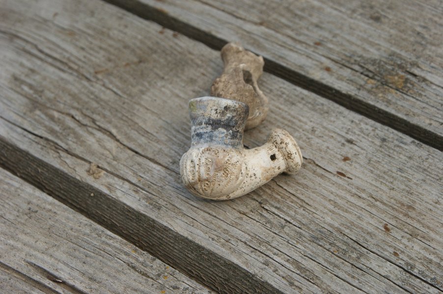 - трубки "носогрейки" для курения. Они изготовлены из белой глины и содержат невероятные орнаменты, одна — с остатками зеленой поливы. Считается, что их широко использовали в 17-19 вв;