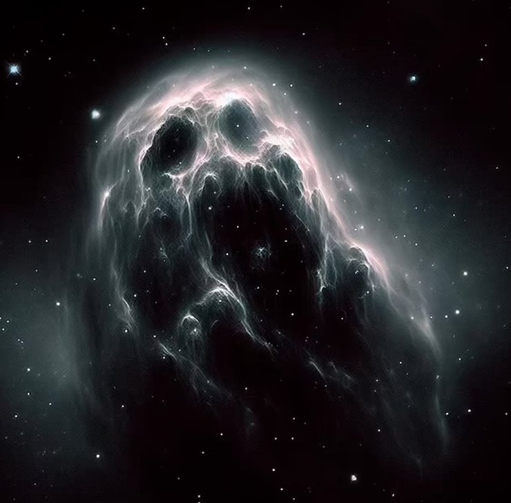 Согласно полученным данным, на которые опирался художник, галактика выглядит как призрак с двумя глазами и большим открытым ртом, будто бы он с криком улетает в бездну.