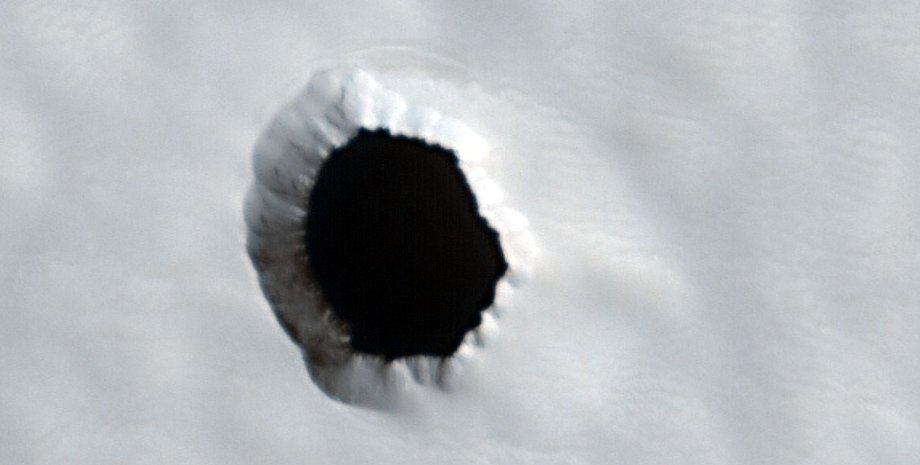 На поверхности Марса обнаружили гигантскую дыру, которая может вести к подземной пещере. Объект удалось отыскать с помощью камеры HiRISE на межпланетной станции (MRO) NASA, пишет ScienceAlert.
