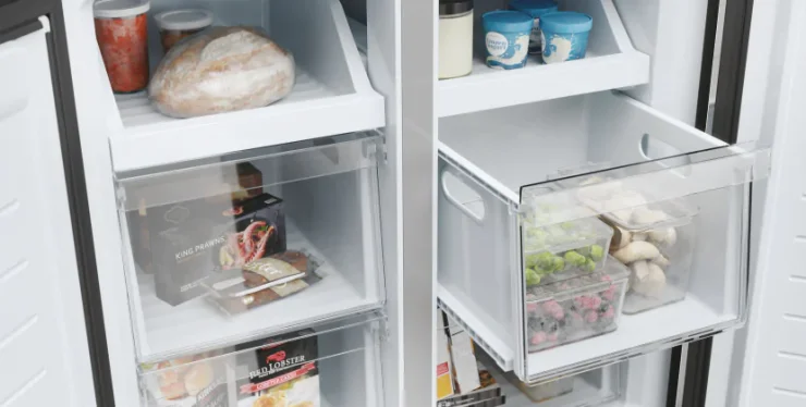 Также этот холодильник Side-by-side от Haier имеет инновационную LED-подсветку, чтобы вы видели все продукты без темных зон, много полочек и отделов, включая отсеки под овощи/фрукты с высокой влажностью и класс энергосбережения А++.