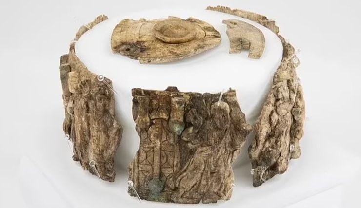Ученые обнаружили на 1500-летней шкатулке из слоновой кости библейскую сцену, в которой Моисей получает 10 заповедей от Бога на горе Синай. Также на шкатулке выгравированы изображения святых и вознесение Христа.