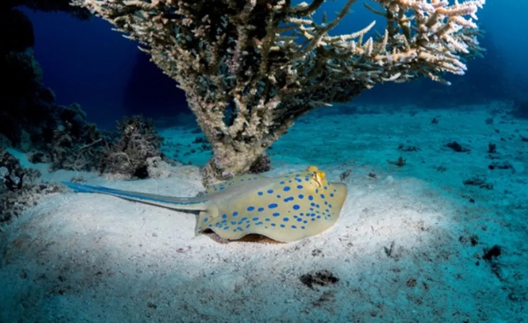 Исследователи изучили кожу ленточнохвостого ската, чтобы понять, как на их коже появляются ярко-синие горошины.