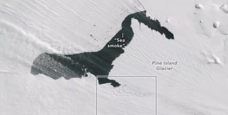На спутниковых снимках видно, как над ледником Пайн-Айленд поднимается морской дым.