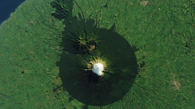На спутниковый снимок попала заснеженная вершина священного в Новой Зеландии вулкана, которую окружают тысячи искривленных, похожих на гоблинов деревьев, пишет LiveScience.