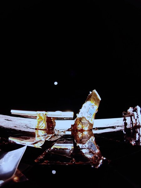 Через полчаса после посадки Blue Ghost начал отправлять фотографии с поверхности, первой из которых стало несколько засвеченное селфи.