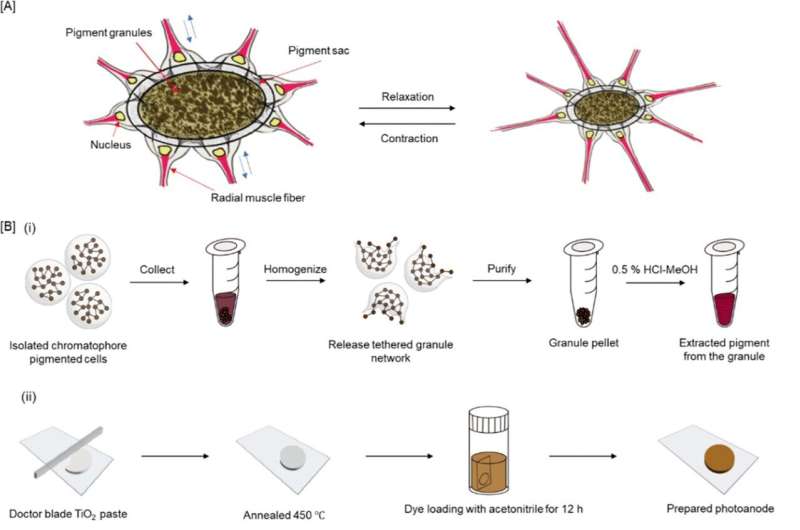 В новом исследовании ученые попытались проверить эту теорию. Для этого они построили солнечную батарею, работающую на энергии кальмара. Ученые использовали проводящее стекло, полупроводники. Электролиты и пигментированные наночастицы хроматофоров, взятые из препарированного кальмара, чтобы создать цепь. Фокусируя имитированный солнечный свет на стекле, ученые активировали цепь и измеряли, сколько энергии она вырабатывала.