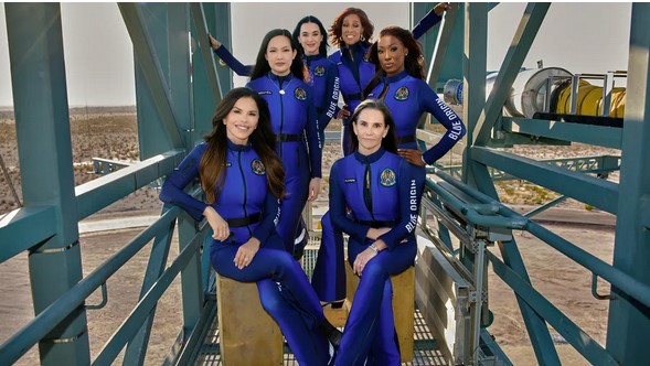 Экипаж миссии NS-31 компании Blue Origin, состоящий исключительно из женщин. По часовой стрелке начиная снизу слева: Лорен Санчес, Аманда Нгуен, Кэти Перри, Гейл Кинг, Аиша Боу и Кериэнн Флинн