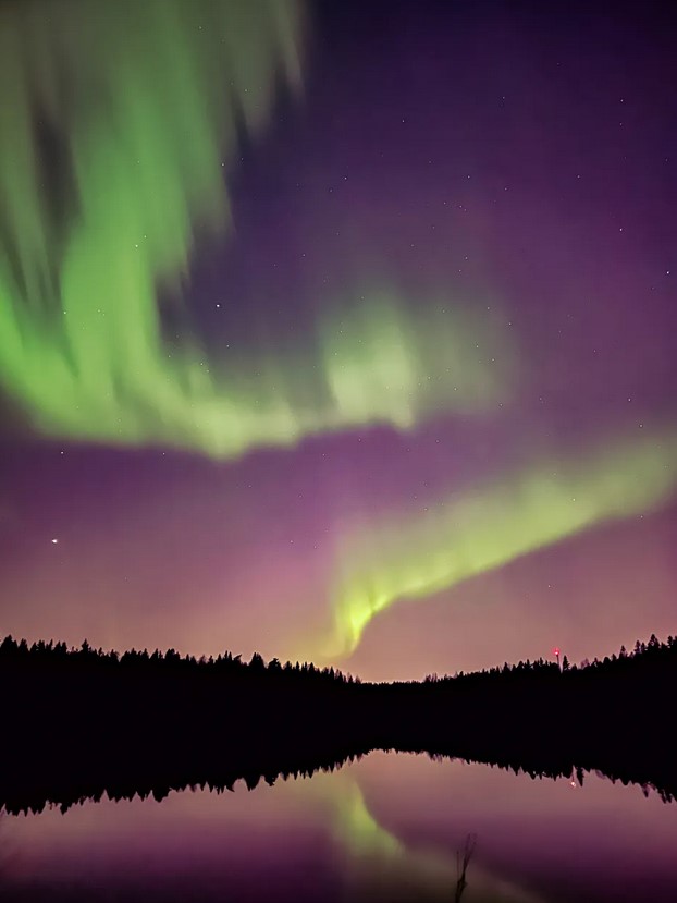 Напоминаем, что полярное сияние возникает из-за взаимодействия заряженных солнечных частиц с молекулами газов в атмосфере Земли, что приводит к появлению красочного свечения в небе. Чаще всего это явление наблюдается в полярных районах нашей планеты, но при появлении сильной геомагнитной бури, его можно увидеть и в средних широтах.