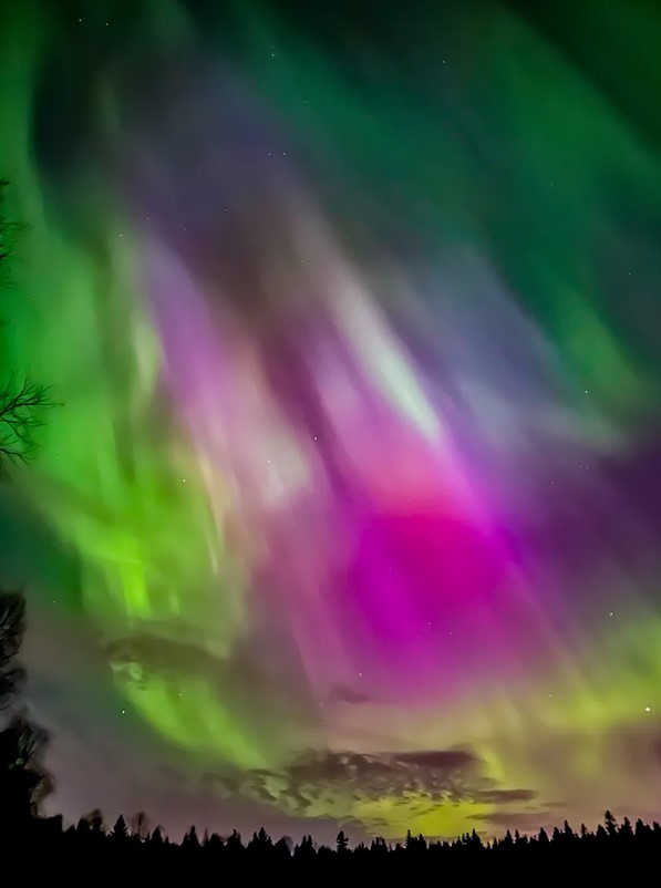 Астрофотограф Остин Макдональд из Финляндии сделал потрясающие фотографии полярного сияния, когда геомагнитная буря достигла уровня G4 в ночь с 16 на 17 апреля. По словам Макдональда, он видел многие полярные сияния, но это было удивительно чем-то уникальным.