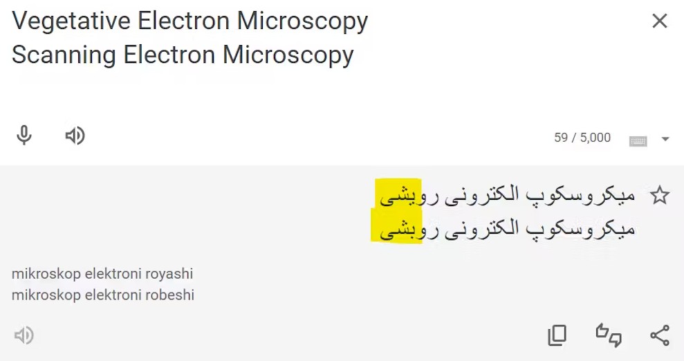 В процессе оцифровки ошибочно объединились "вегетативный" из одного столбца текста с "электроном" из другого. В результате этого появился фантомный термин. Спустя десятилетия "вегетативная электронная микроскопия" появилась в нескольких работах иранских ученых. В 2017 и 2019 годах в двух работах этот термин использовался в английских подписях и аннотациях.