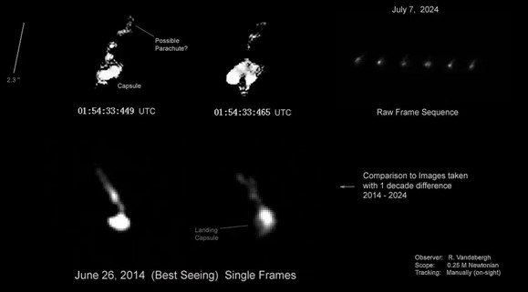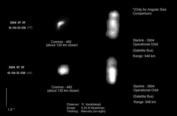 В социальной сети Х астроном Ральф Вандеберг, который занимается отслеживанием движения искусственных объектов на орбите, опубликовал изображения космического корабля "Космос-482" и обнаружил неизвестный объект, который может быть раскрытым парашютом
