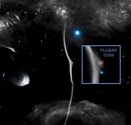 Астрономы пришли к выводу, что трещина была вызвана быстро движущейся нейтронной звездой, а если точнее, то ее разновидностью – пульсаром, который врезался в G359.13 на огромной скорости.