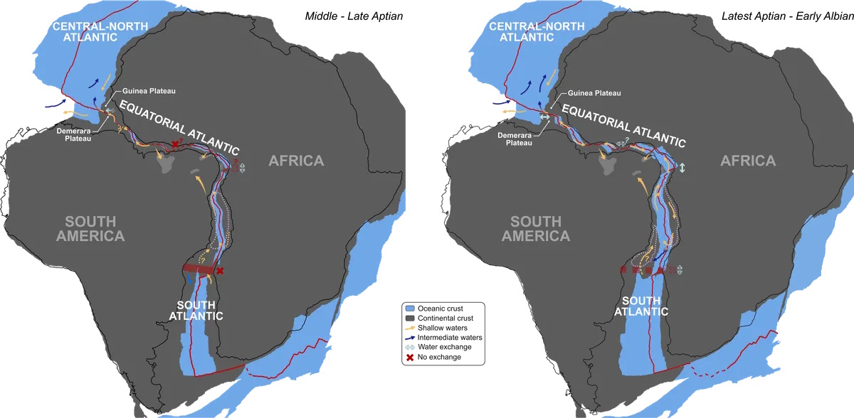 Новое исследование помогает определить, когда начал формироваться Атлантический океан. Большинство предыдущих исследований предполагали, что Экваториальный Атлантический шлюз открылся между 113 и 83 миллионами лет назад, однако результаты нового исследования показывают, что открытие шлюза произошло около 117 миллионов лет назад. Однако ученые признают, что сам шлюз стал шире и глубже на втором этапе, который начался около 113 миллионов лет назад, что позволило более непрерывно обмениваться водой.
