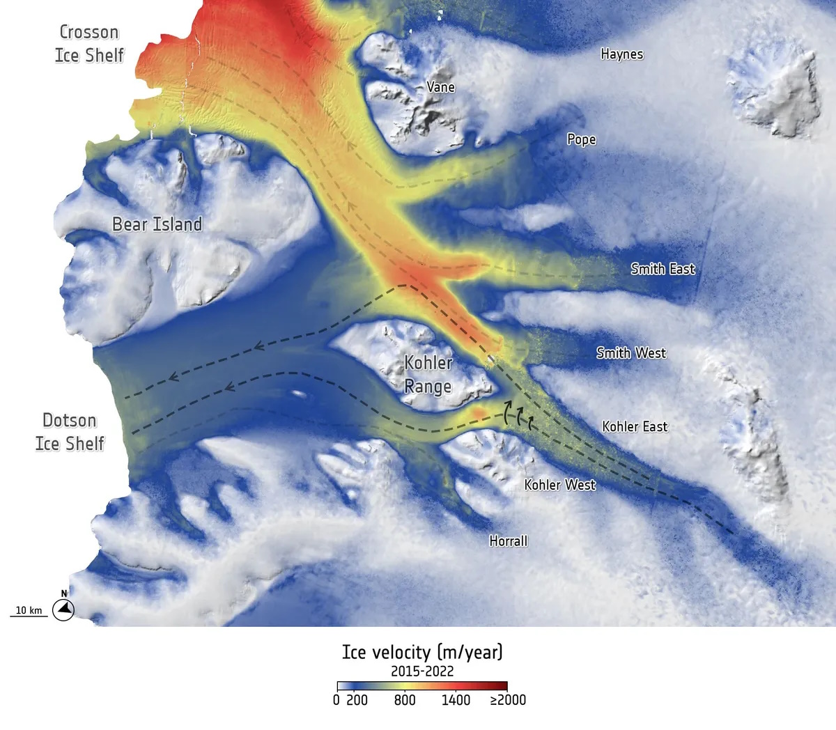 В ходе нового исследования группа под руководством доктора Хизер Селли из Университета Лидса изучила скорость, с которой семь потоков льда в Западной Антарктиде текут к шельфовым ледникам Дотсон и Кроссон, простирающимся в море Амундсена. Команда также хотела узнать, как эта скорость изменилась в период с 2005 по 2022 года.