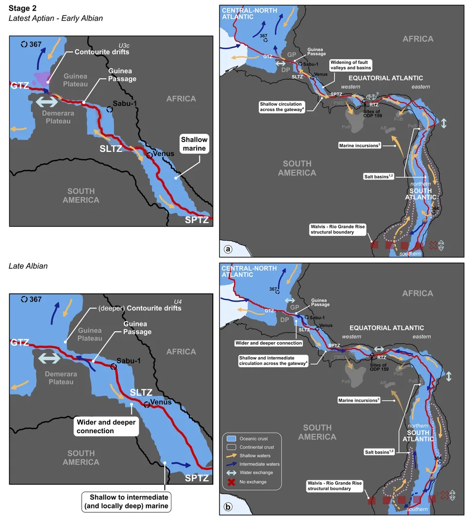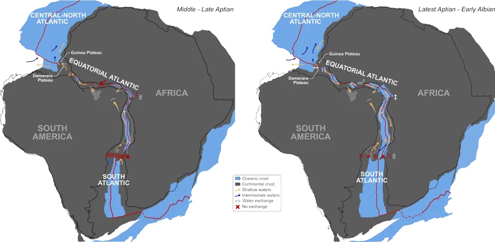 Бассейны, которые были затоплены при последнем рифтовании Южной Америки и Африки, были богаты углеродом, а рождение океана, как считают ученые, могло сделать секвестрацию углерода менее эффективной.