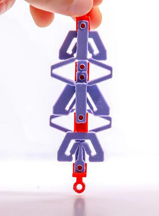 Ученые объединили три разных типа нелинейных блоков, напечатанных на 3D-принтере и показали, что каждая деталь демонстрирует определенное поведение силы и расширения и таким образом удалось создать контрзащелкивающую систему.