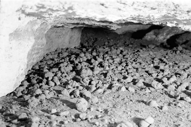 Некоторые древние ленивцы укрывались в пещерах, оставляя кучи фекалий, которые окаменевали и превращались в копролиты. Пещера Рампарт, 1938 год