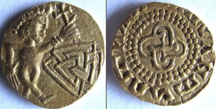 Самая древняя среди всех: в Англии обнаружили золотую монету с необычными изображениями (фото)