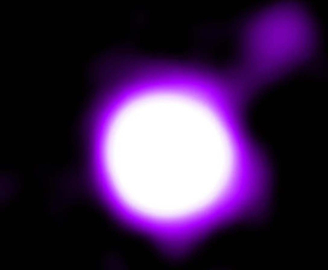 На изображении квазара струя показана фиолетовым цветом, но, как уже писал Фокус, ученые говорят, что на самом деле фиолетового цвета не существует. Мы его можем видеть благодаря нашему мозгу.