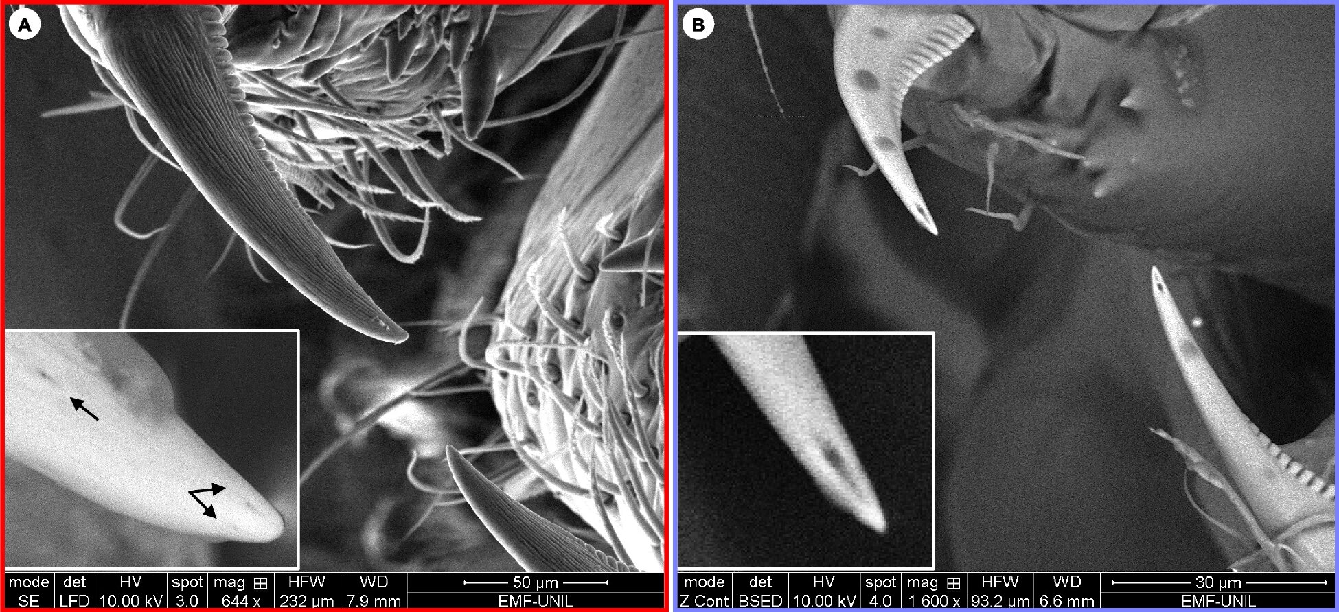 В ходе исследования ученые собрали несколько образцов пауков и изучили их под микроскопом в лаборатории — команда наблюдала, как они охотятся.
