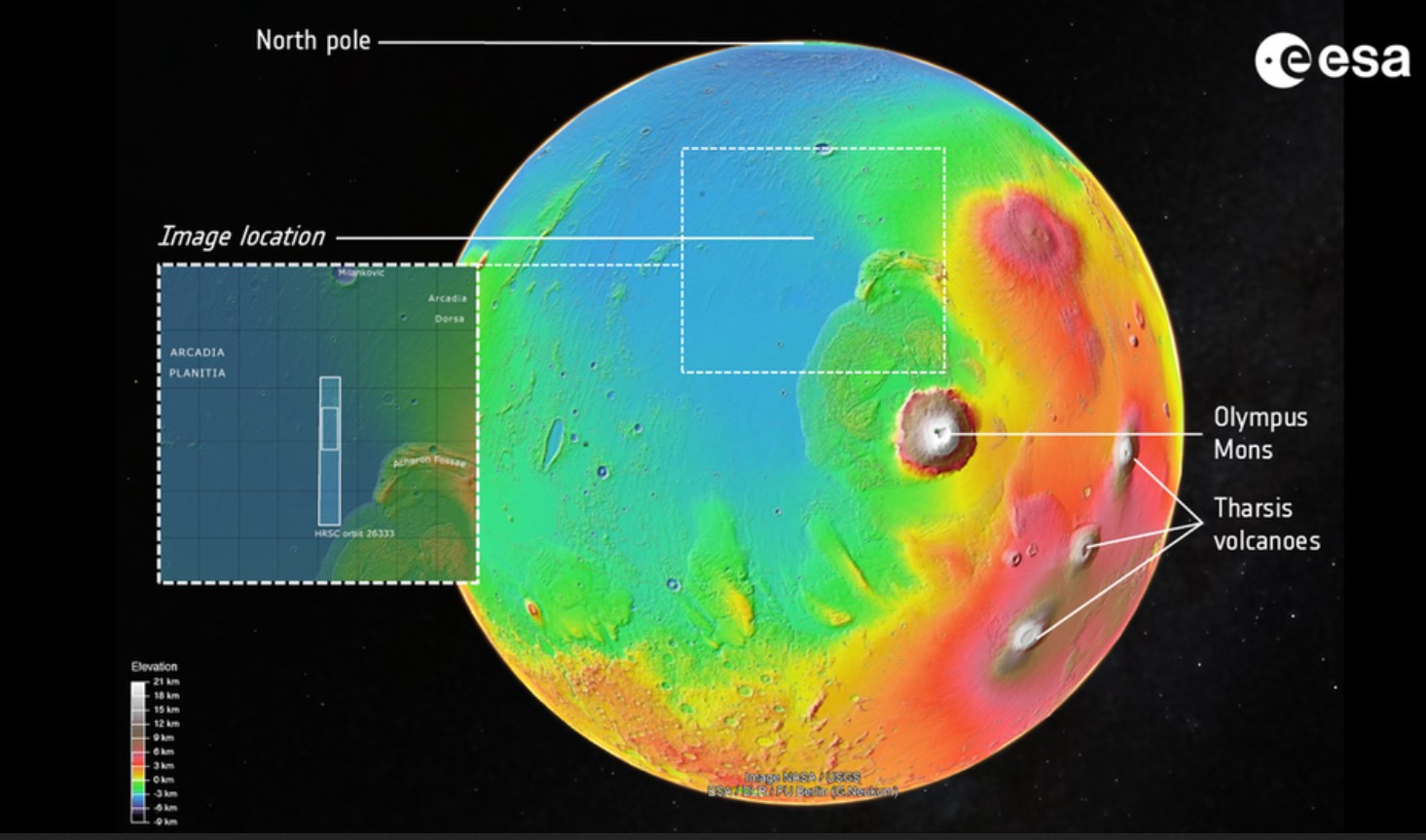 Космический аппарат Mars Express с помощью своей камеры высокого разрешения сделал потрясающую фотографию равнины Аркадия на Марсе, которая имеет важное значение для исследования прошлого планеты и ее потенциала для обитания людей в будущем.